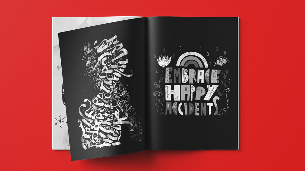 A digital zine with 100 pages of lettering and calligraphy in black-and-white.